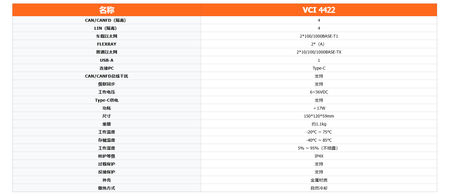 含 4 路独立隔离 LIN(波特率≤19200bps)、2 路独立隔离 FlexRay(含 Channel A/B 通道,单通道波特率≤10Mbps,使用时支持硬件与软件时钟同步)